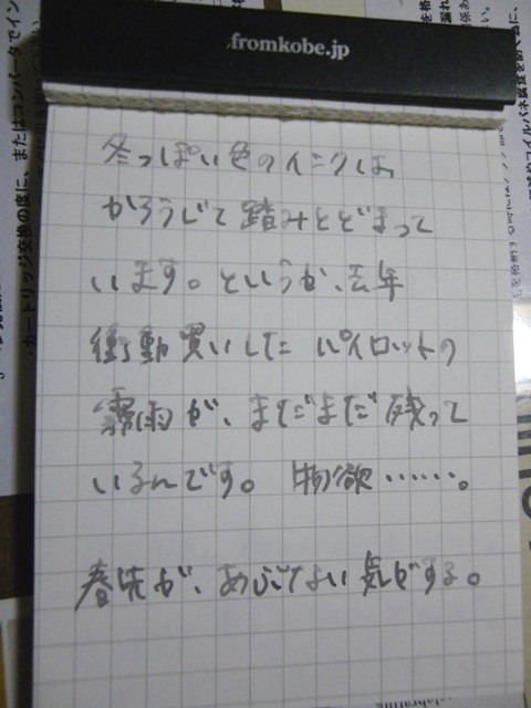 ということで、秋っぽいインクなんて買っても、有効活用的な意味ではとても微妙なのですが、しかし、セピア色のインク、目に楽しいです。使ってて幸せになれるから、まあいいか……。