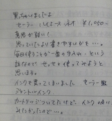 しばらくこれで修行して、それで飽きたりせずに長期的に使いこなすことができたなら、いつかボーナスで、もうちょっといいやつを買おうと思います。地元の万年筆専門店に突撃して。