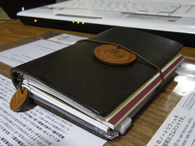 使い込んでノートが全体的にくたっとしてきたら、また印象も違うかなあと思います。まあ別に多少はみだしてたって、使ってないときはゴムバンドで留めとくんだし、問題はないんですが。